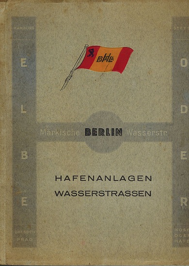 Berlin. Hafenanlagen - Wasserstraßen. Märkische Wasserstr. [zwischen] Elbe [Hamburg, Dresden, Prag und] Oder [Stettin, Kösel Oderhafen]. Berlin, BEHALA [Berliner Hafen- und Lagerhaus-Betriebe], ohne Jahr [1930]. Broschiertes Original-Heft; 4°; 50 Seiten, darunter 16 gefaltete Blätter (Karten, Pläne), die jeweils nur als eine Seite gezählt wurden. Kanten bestoßen; Frontispiz (S. 1/2) stark gelockert; insgesamt noch gutes Exemplar.