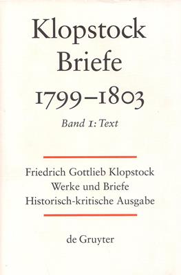Friedrich Gottlieb Klopstock: Werke und Briefe. Abteilung Briefe X 1: Briefe 1799-1803. Band 1: Text Berlin, De Gruyter, 1999. 1. Aufl. Leinen 281 S. gr. 8°. leichte Gebrauchsspuren Sofortversand mit Rechnung, schönes, sauberes Exemplar, lediglich äußerlich leichte Lagerspuren und ein kleiner Archivstempel auf dem Vorsatzblatt.